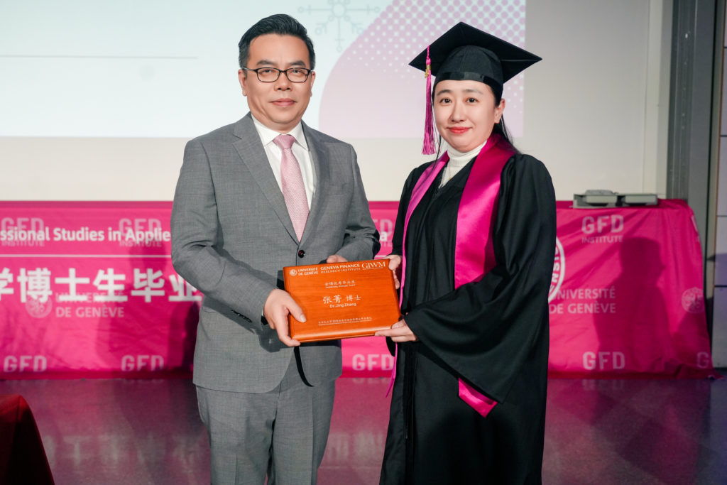 Program directors, partners, esteemed guests and speakers attended the event to celebrate with the graduates and their families. We were honored to have the participation of Ambassador Shen Jian, Deputy Permanent Representative of the People’s Republic of China to the United Nations Office at Geneva and other International Organizations in Switzerland, as well as President Yan Jun of the Global Finance Doctorate Institute (GFDI), University Vice-Rector Stéphane Berthet, and Director Prof. Rajna Gibson Brandon of GIWM and Founder of the Geneva Finance Research Institute at the University of Geneva.